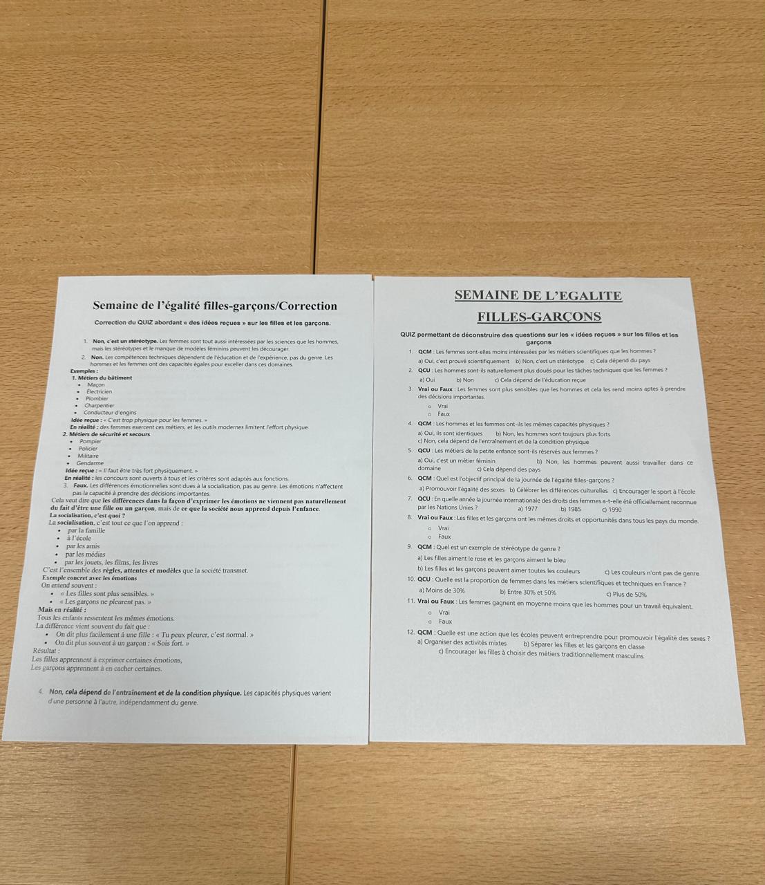 Par ailleurs, des activités pédagogiques variées sont proposées aux élèves : débats, quiz, analyses de stéréotypes ou encore création d’affiches pour promouvoir l’égalité . Ces ateliers visent à développer l’esprit critique et à encourager l’expression des élèves dans un cadre respectueux.